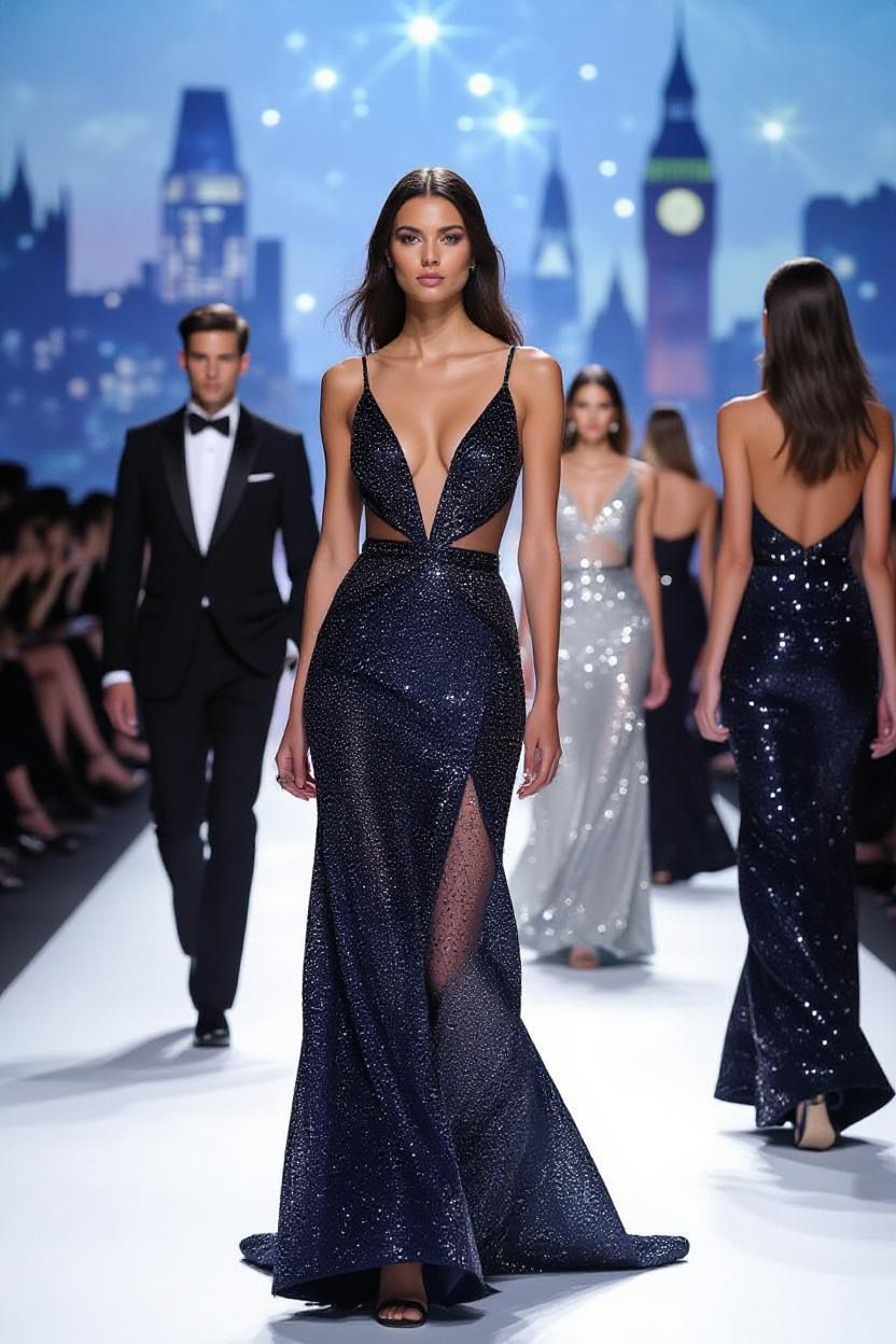 Dark Silver Sequin Plunge Neck Mermaid Gown with Corset Back - Custom Order