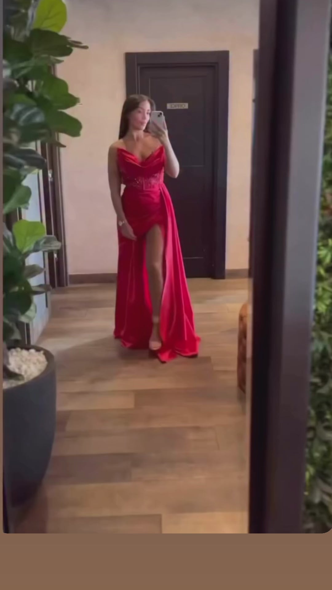Romantic cowl neck creates timeless elegance. Beautifully draped satin bodice flatters every curve. Hand-beaded crystal belt adds dazzling sparkle at the waist. Dramatic high thigh split adds movement and allure. Flowing train creates red carpet glamour. 100% quality control guaranteed.